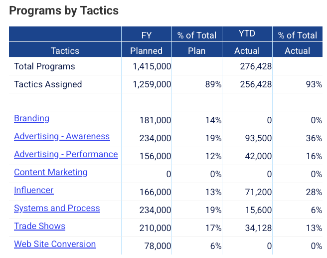 - Flexible Reporting: Analyze spending by product, region, goal, or tactic to align with strategic priorities.